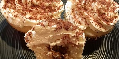 Tiramisu cupcakes? You bet! Gluten-free, yellow cupcakes glazed with coffee liqueur and iced with a sweetened mascarpone whipped with whipping cream until light and airy with Amaretto liqueur. People who've eaten these cupcakes said they were divine.